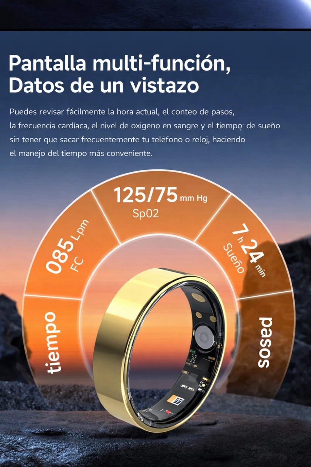 Anillo de salud inteligente resistente al agua bateria de larga duración monitor de oxígeno en sangre y frecuencia cardíaca y reloj despertador